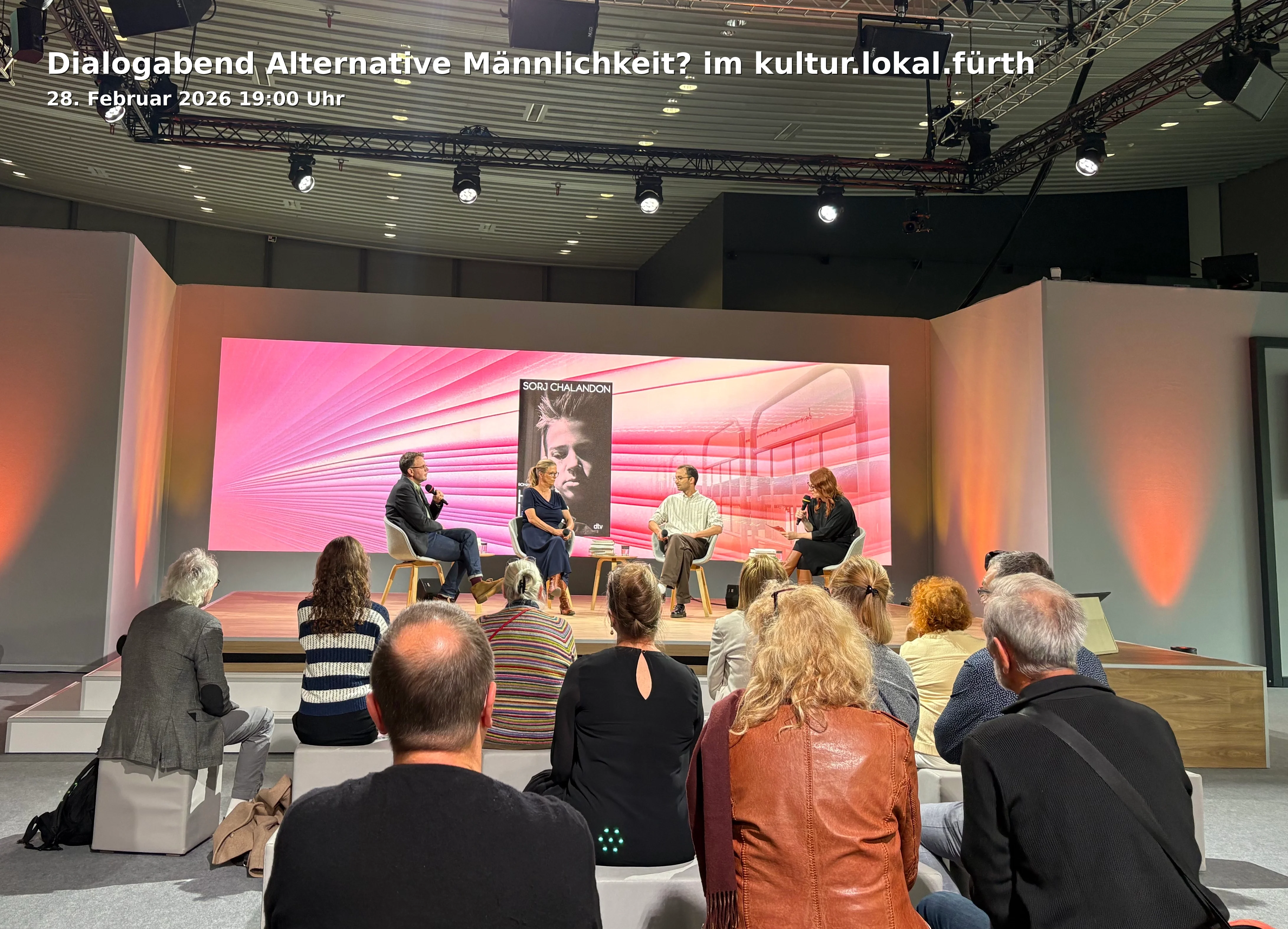 On February 28, 2026, at 7:00 PM, kultur.lokal.fürth invites you to a dialogue evening that presents current discussions around images of masculinity in an understandable way and encourages discussion. A compact impulse lecture opens the event, followed by a moderated exchange with the audience.
