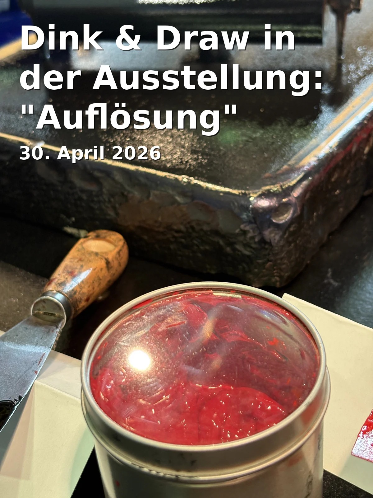 Join the participatory workshop Dink & Draw in the exhibition "Dissolution" by Marie-Kathrin Saalfrank at kultur.lokal.fürth. Let your creativity flow, draw, and experiment with different techniques. The relaxed atmosphere invites you to exchange ideas with other participants over a drink. The event provides a unique opportunity to test artistic skills and learn more about Saalfrank's artworks.