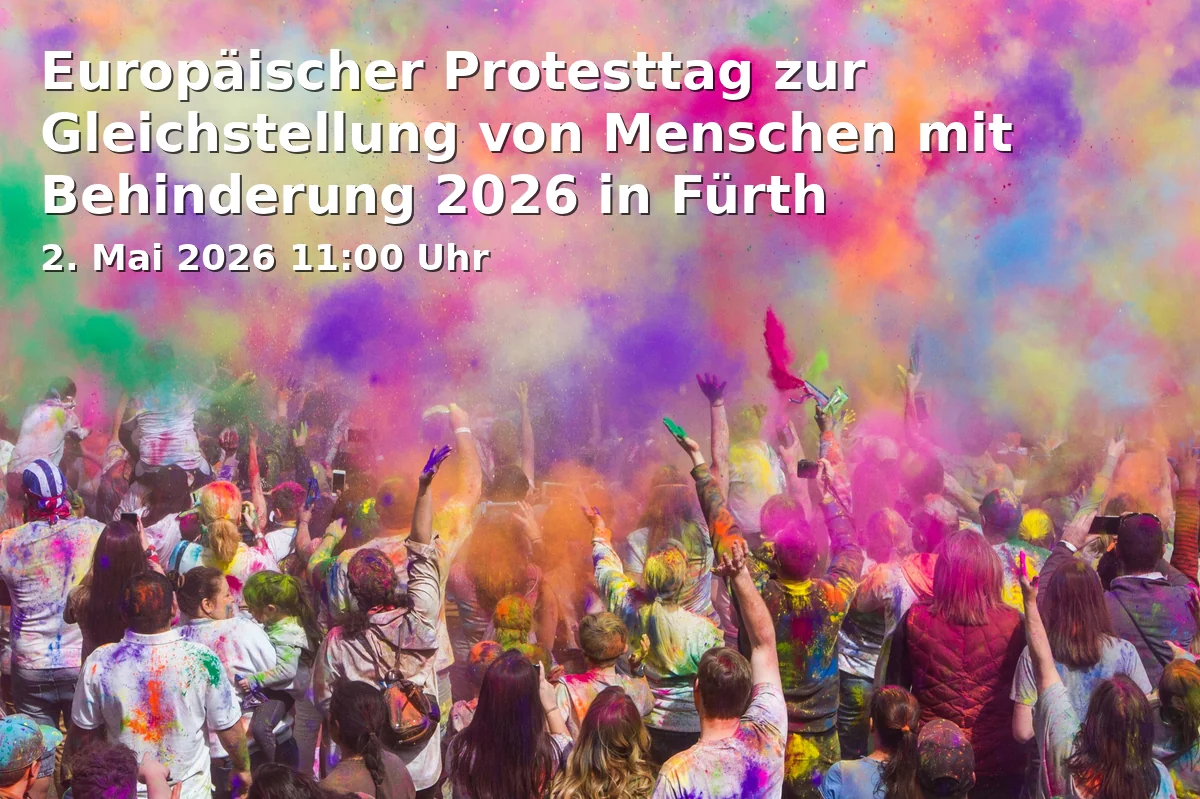 Der Europäische Protesttag zur Gleichstellung von Menschen mit Behinderung bringt die Dr.-Konrad-Adenauer-Anlage in Fürth von 11 bis 16 Uhr in Bewegung. Der Aktionstag verbindet politische Haltung, inklusives Bühnenprogramm, Infostände und Begegnung zu einem lebendigen Mehrtages-ähnlichen Erlebnis an einem einzigen intensiven Tag.