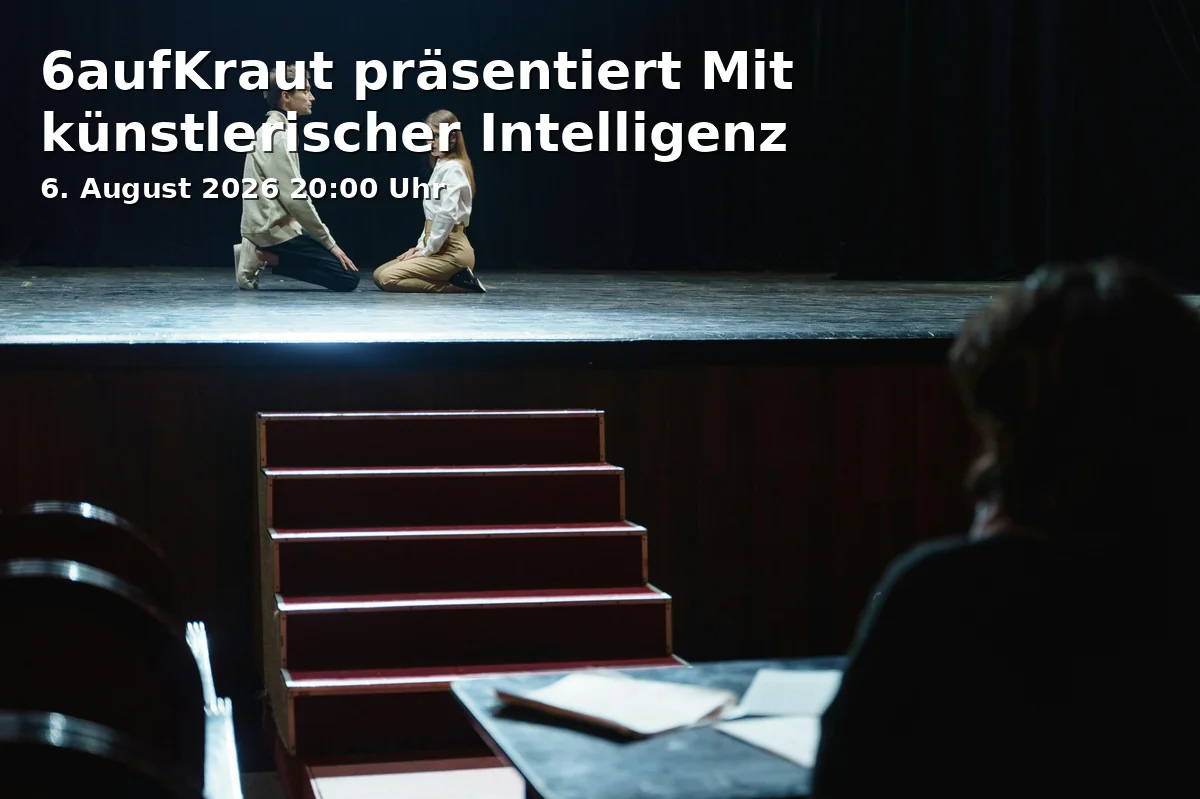 Mit „Mit künstlerischer Intelligenz“ lädt 6aufKraut zu einem Improtheater-Abend ein, der ganz aus dem Moment lebt. In der Kofferfabrik in Fürth entsteht am 6. August 2026 ein Bühnenerlebnis, das keine Wiederholung kennt: spontan, witzig, poetisch und immer nah am Publikum.